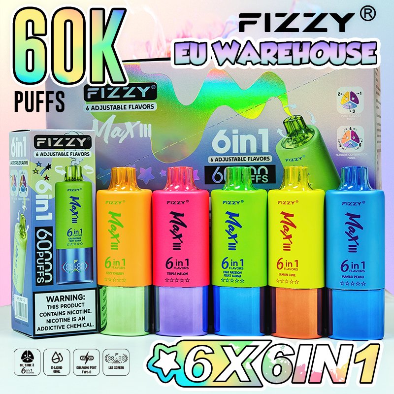Fizzy Max 6 flavors in 1 vape 60000 puffs Product Description