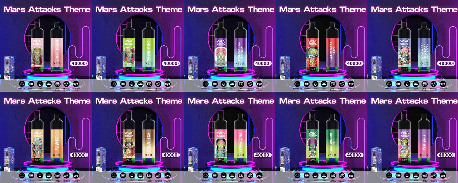 WGA 40000 40k puffs vape Mars attacks theme Product Description